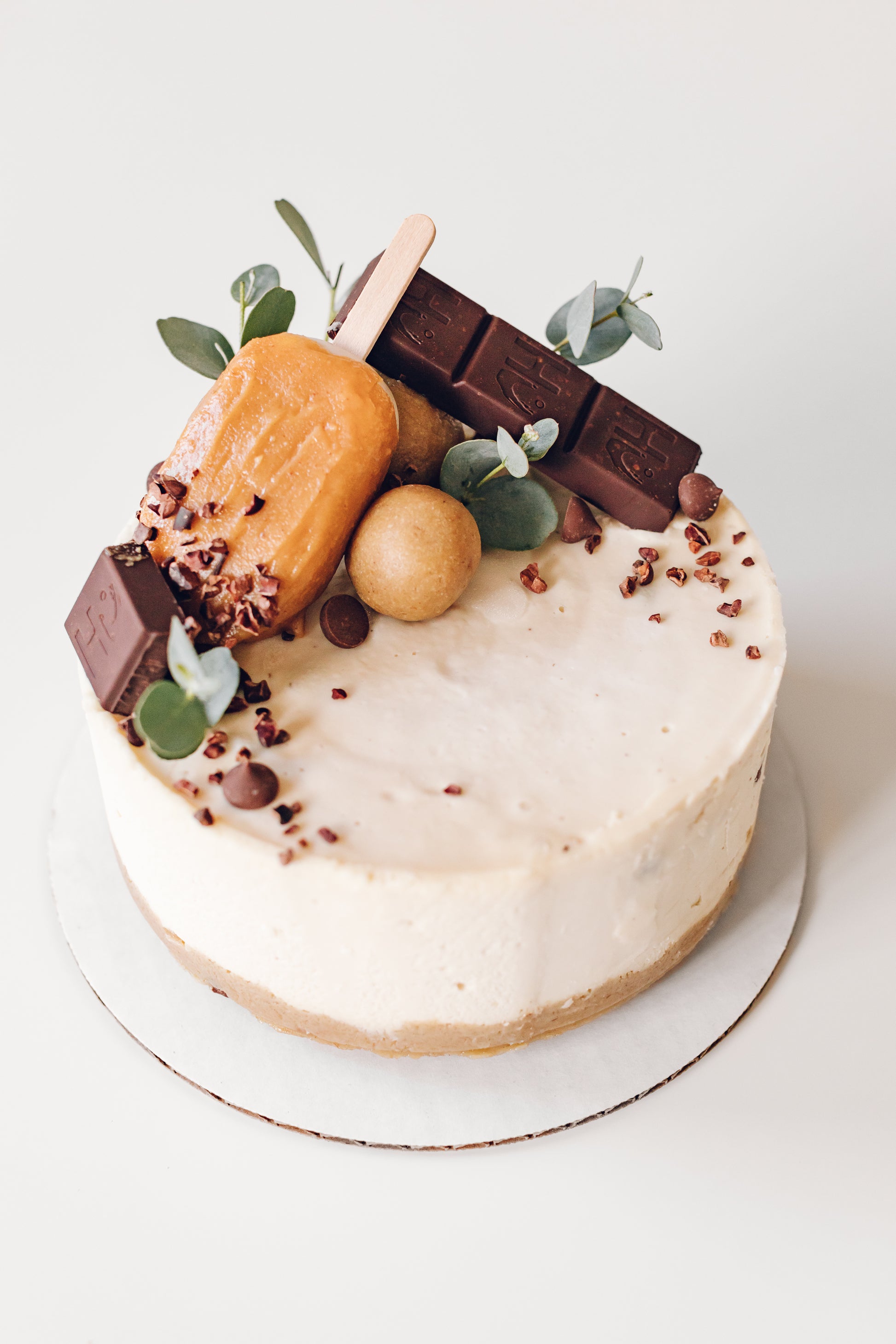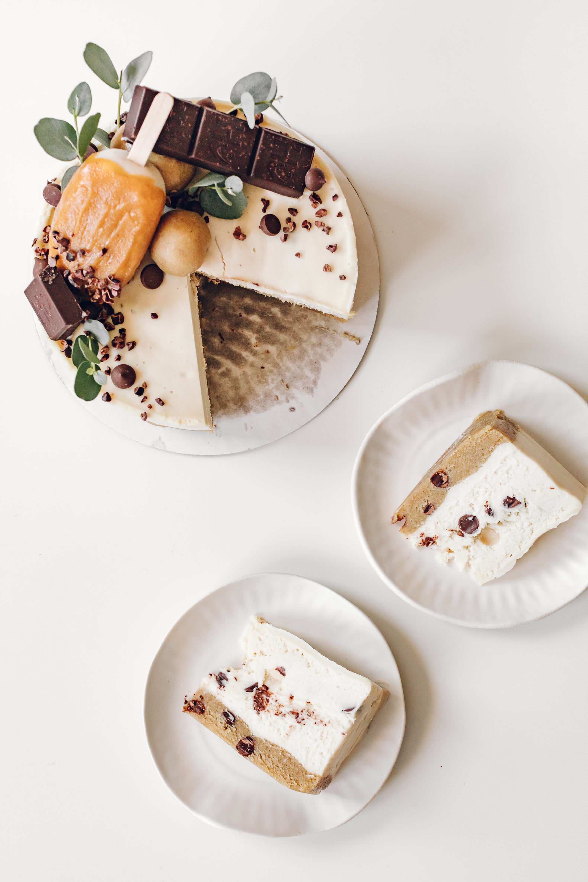 This continues to be the most popular cake we make. This cake features a rich vanilla cream on top of our chewy cookie dough crust with chocolate chips scattered throughout. This is our tribute to a classic, familiar flavor that will leave you feeling all kinds of nostalgic. If you have never tried our cakes, look no further because this might become your favorite. This cake + our strawberries & cream cake are also our most kid-friendly cakes!